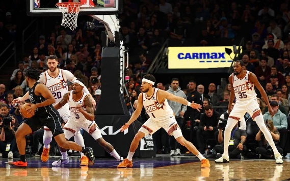 太陽(yáng)隊(duì)首發(fā):德文-布克、凱文-杜蘭特、尤素福-努爾基奇、布拉德利-比爾、奇梅齊耶-梅圖